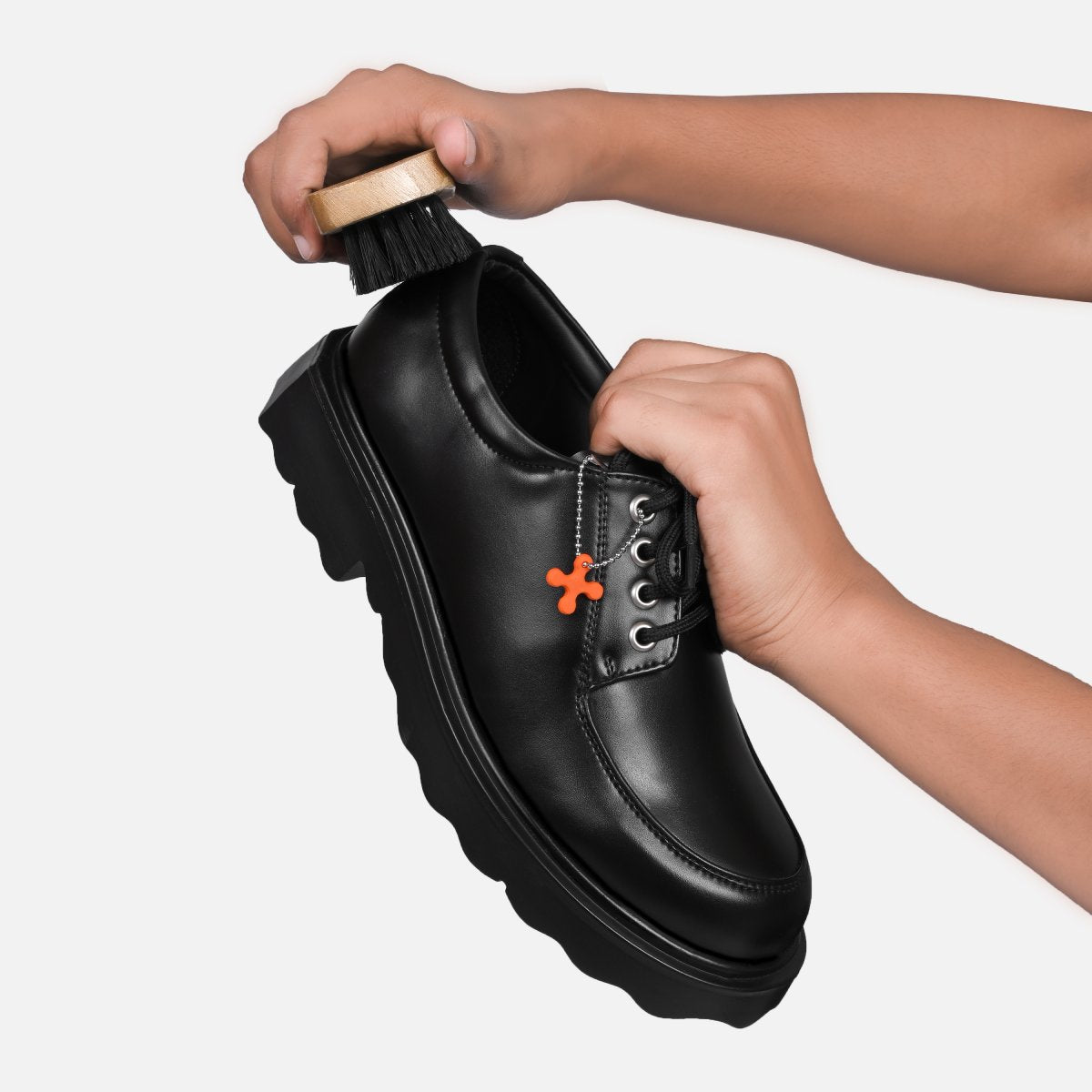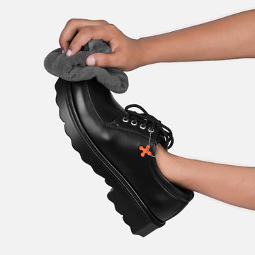 Chemicals don’t belong here. Skip the harsh cleaners and solvents.Choose a colorless shiner or a matching shoe polish for extra shine and tone.