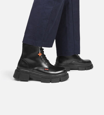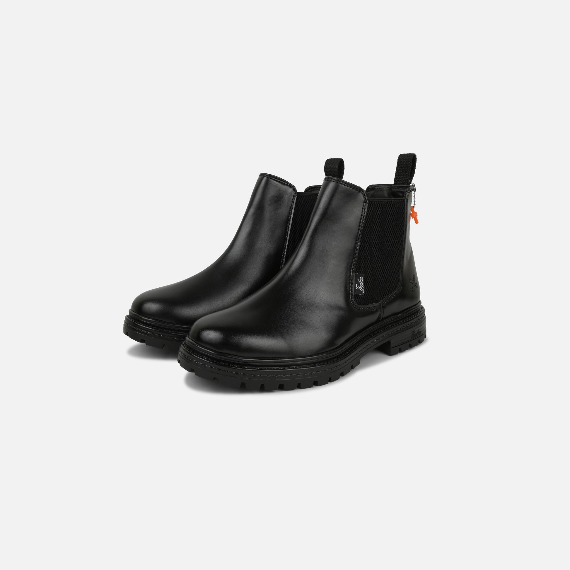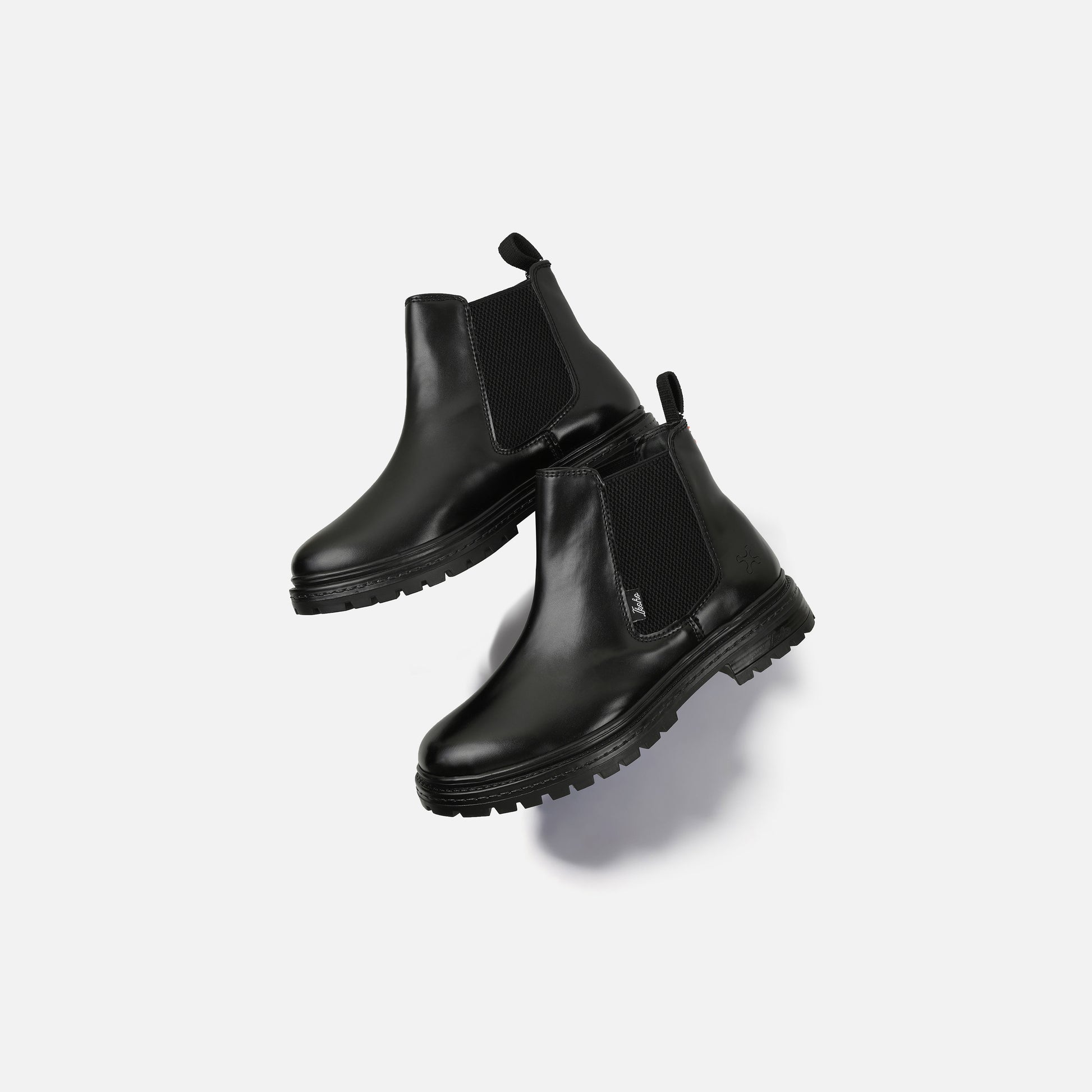 The Ikoho Knox Chelsea Boots don’t chase trends, they hold their ground. Marked with a signature orange hang tag, these sharp black boots embody edge and attitude-built for those who wear confidence like second skin.