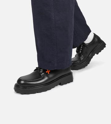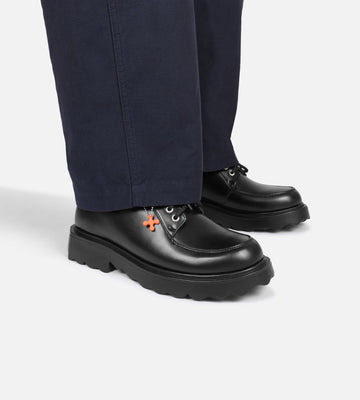 Smooth above and heavy below, the Toxic Chunky Derby balances polish with defiance. Built with oversized soles, it resists conformity, reminding you that sharp edges aren’t flaws but armour, making each step unmissable, uncompromising, and undeniably yours.